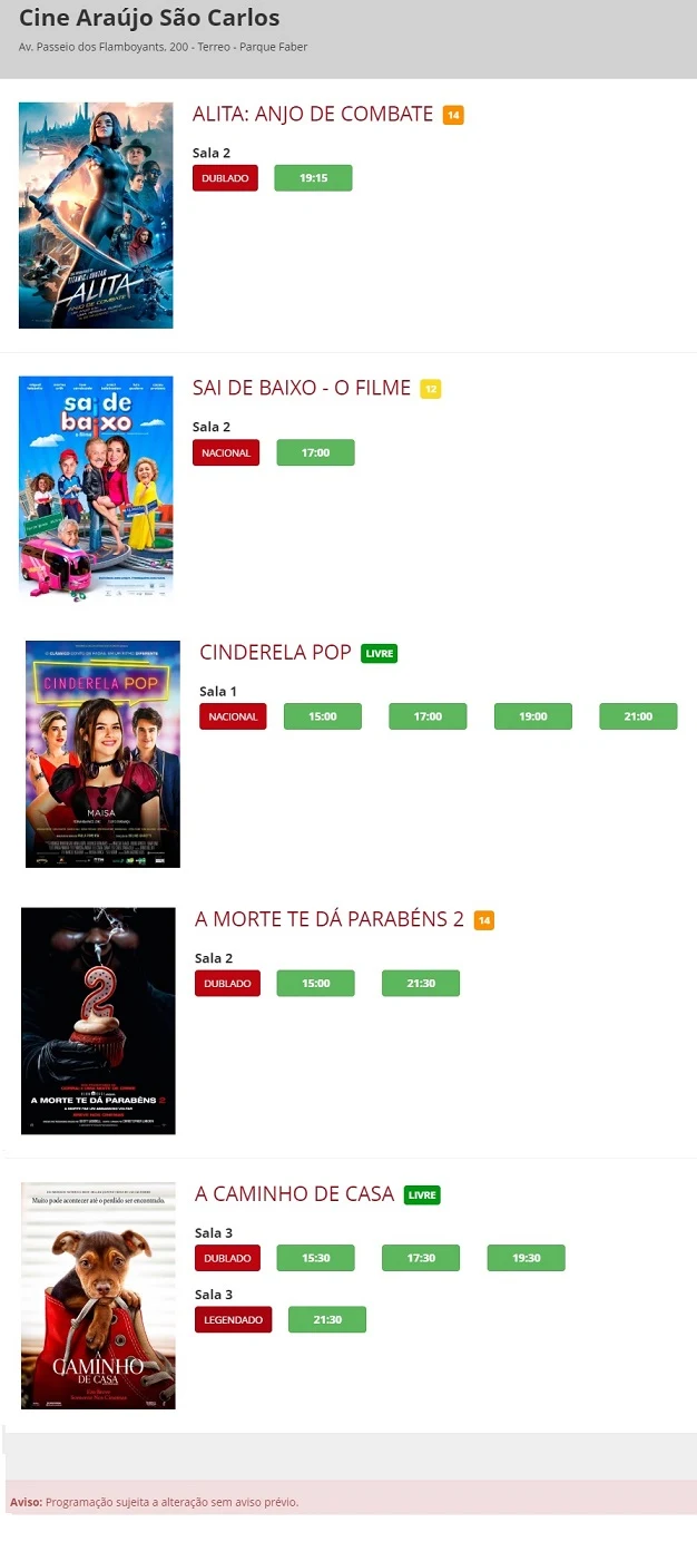 Maiores informações: https://iguatemi.com.br/saocarlos/cinema